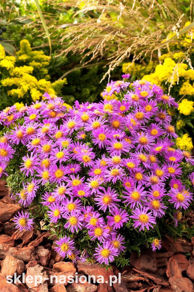 Aster krzaczasty Alice Haslam to miła dla oka bylina, kwitnąca na koniec sezonu. Ciemne, drobne ulistnienie i liczne fioletowe kwiaty z żółtymi środkami prezentują się wprost rewelacyjnie na tle jesiennej scenerii. Bogato kwitnące astry krzaczaste to genialny materiał na obwódki i rzędy okalające ścieżki. Późny termin kwitnienia cieszy nie tylko nasze oczy, ale także owady zapylające. Mają szansę skorzystać z kwiatów jeszcze przed zimowym snem.