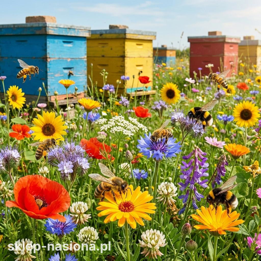 Zastosowanie: Jest to nadzwyczajnie funkcjonalna mieszanka, która da wiele radości posiadaczom pasieki, ale i osobom chcącym mieć naturalny ogród. Polecamy ja również osobom dbającym o ekologię. Wysiewając mieszankę roślin miododajnych, dajemy schronienie i pożywienie dla naszych maleńkich skrzydlatych przyjaciół. Ogórecznik lekarski, Nagietek lekarski, Chaber bławatek, Złocień właściwy, Nachyłek barwierski, Onętek, kosmos, Pszczelnik mołdawski, Jeżówka purpurowa, Żmijowiec grecki, Gryka zwyczajna, Gipsówka wytworna, Lebiodka pospolita, Komonica, Len zwyczajny, Nostrzyk biały, Nostrzyk lekarski, Melisa lekarska, Dziwaczek jalapa, Czarnuszka damasceńska, Mak polny, Facelia błękitna, Szałwia lekarska, Koniczyna krwistoczerwona – to komponenty oferowanego w naszym sklepie mixie. Nasiona mają różny procentowo udział w składzie mieszanki. Mogą zostać użyte do obsiewania nieużytków, jagodników i sadów, pobliskich rowów.