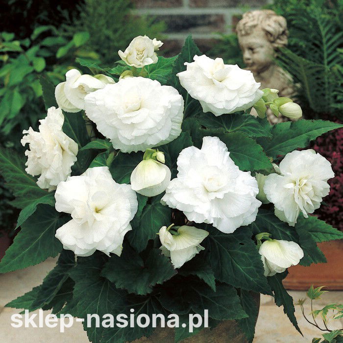 Zastosowanie: Begonia w naszym klimacie nie czuje się najlepiej, więc uprawia się ją w glebie tylko w najcieplejsze miesiące roku. Z tego względu może czasowo pojawiać się na letnich rabatach. Ze względu na niski pokrój najczęściej sadzi się ją na obwódkach lub na brzegach rabat, jako dopełnienie całej kompozycji. Jej białe kwiaty świetnie skomponują się z innymi roślinami. Begonia podwójna to także świetna roślina doniczkowa, która zdobi nie tylko tarasy i balkony, ale także mieszkania.