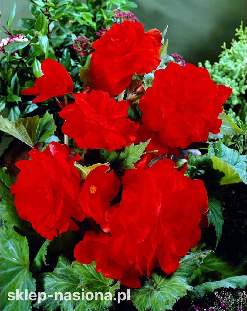 Begonia wiedzie prym wśród kwitnących roślin rabatowych już od wielu lat. Dzięki wytężonej pracy hodowców możemy dziś cieszyć się mnóstwem odmian, różniących się pokrojem oraz kształtem i barwą kwiatów. Begonia wielkokwiatowa podwójna należy do tych najbardziej dekoracyjnych. Jej ogromne kwiaty w nasyconej barwie czerwonego wina są nie mniej ozdobne od najpiękniejszych gatunków róż.