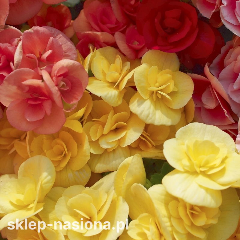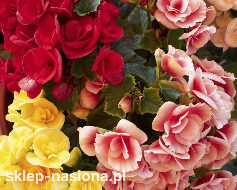 Kolor kwiatów: Prezentowany w naszym sklepie zestaw bulw begonii podwójnej zawiera różne odmiany kolorystyczne: białą, żółtą, pomarańczową, czerwoną i różową.