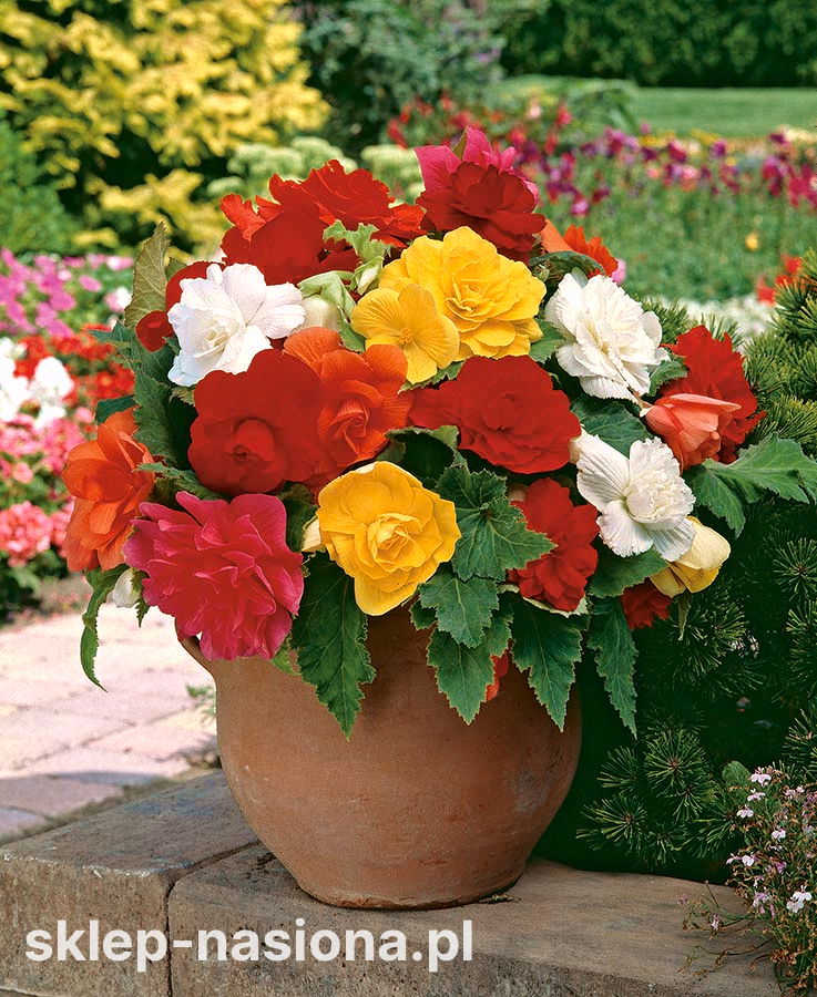 Zastosowanie: Mieszanka kolorów begonii podwójnej to znakomita propozycja na częściowo ocienione rabaty. Bujnie i długo kwitnące byliny, oferowane w naszym sklepie, doskonale sprawdzą się też w uprawie doniczkowej – mogą ozdobić niezbyt mocno oświetlone tarasy i balkony o wystawie północnej bądź zachodniej.