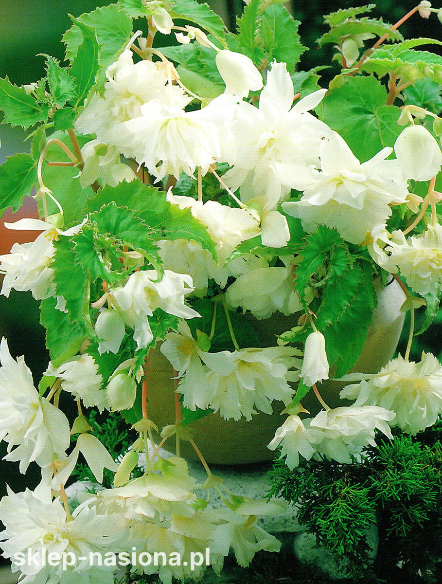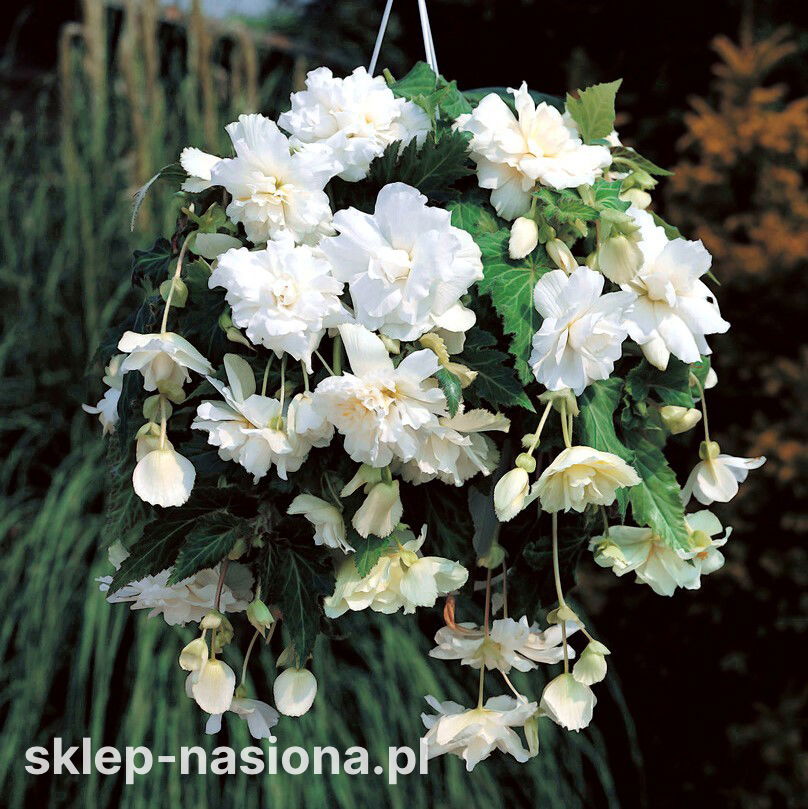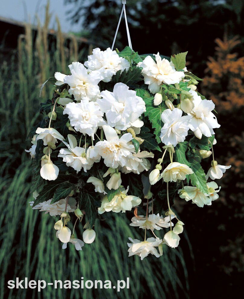 Kolor kwiatów: Nasz sklep ma w ofercie begonie zwisające o białym kolorze kwiatów.