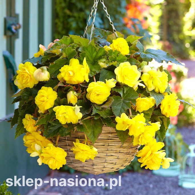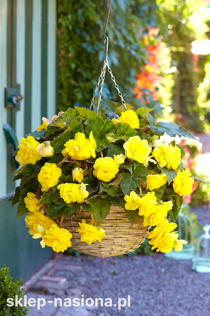 Begonia zwisająca żółta to odmiana o przewieszających się pędach, obsypanych jasnożółtymi, pełnymi kwiatami. Jest wprost idealna do uprawy doniczkowej – w pojemnikach o ciekawej formie wygląda naprawdę uroczo.