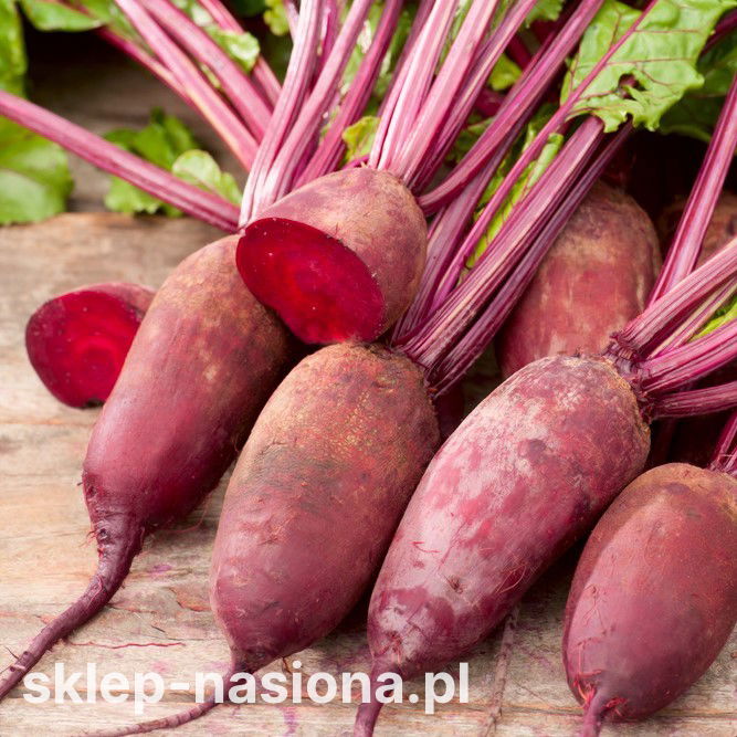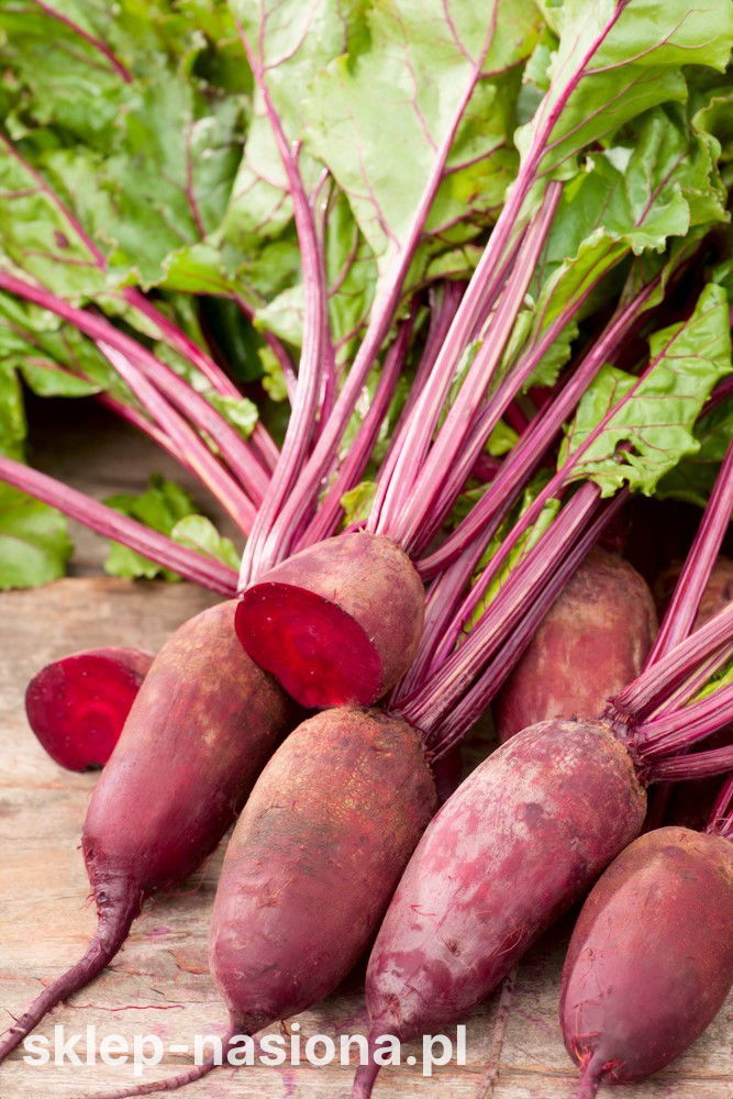 Burak ćwikłowy Renova to późna odmiana ceniona za podłużny, cylindryczny kształt oraz intensywną barwę korzeni. Jest to roślina dwuletnia uprawiana jako jednoroczna, wybierana ze względu na dobre walory smakowe i przydatność do przechowywania. Miąższ bez wyraźnych pierścieni sprawia, że buraki świetnie prezentują się na przekroju i sprawdzają się w wielu zastosowaniach kuchennych.