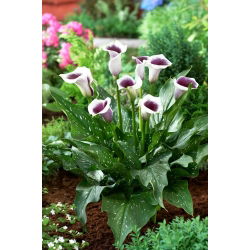 Zastosowanie: calla jest dobrze znaną rośliną doniczkową, ale staje się także coraz popularniejsza w ogrodach. Co prawda, można je uprawiać tylko przez kilka najcieplejszych miesięcy, ale ich urok jest wart zachodu. Nadają się na rabaty i niskie klomby w reprezentacyjnych miejscach.