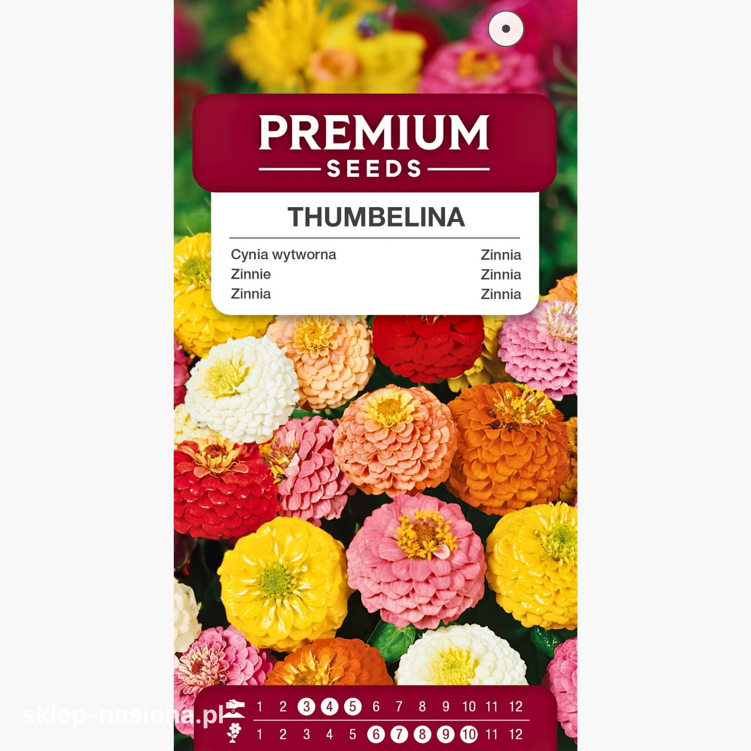 Oferujemy sprzedaż nasion cynii wytwornej karłowej Thumbelina w paczkach o gramaturze 1 g. Na opakowaniu zamieszczono również wskazówki dotyczące uprawy roślin i informacje na temat okresu przydatności ich nasion do siewu.