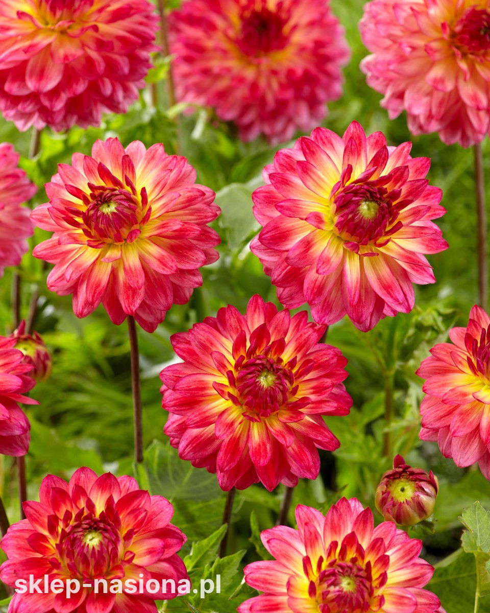 Dalia ‘Armateras’ to efektowna odmiana o intensywnie różowo-żółtych kwiatach, które dodają rabatom i donicom mocnego, barwnego akcentu. Jej długie kwitnienie i wytrzymałość sprawiają, że to doskonały wybór do każdego ogrodu. Kwiaty tej odmiany przyciągają uwagę nietuzinkową kolorystyką – głęboki róż przechodzi subtelnie w odcienie żółci, tworząc ciepłą i energetyczną kompozycję. Dzięki mocnym łodygom dobrze znosi warunki atmosferyczne i świetnie nadaje się również na kwiat cięty.