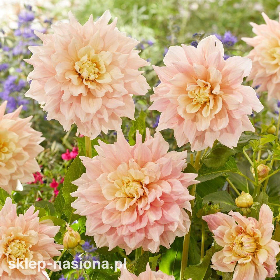Dalia ‘Break Out’ to odmiana, która łączy romantyczny urok z imponującym rozmiarem kwiatów. Jej kremowo-różowe, pełne kwiaty o średnicy nawet do 20 cm tworzą wyjątkowy efekt wizualny – idealny do nasadzeń w stylu klasycznym, rustykalnym lub nowoczesnym. To roślina, która z powodzeniem zastępuje najpiękniejsze róże w ogrodowych aranżacjach.