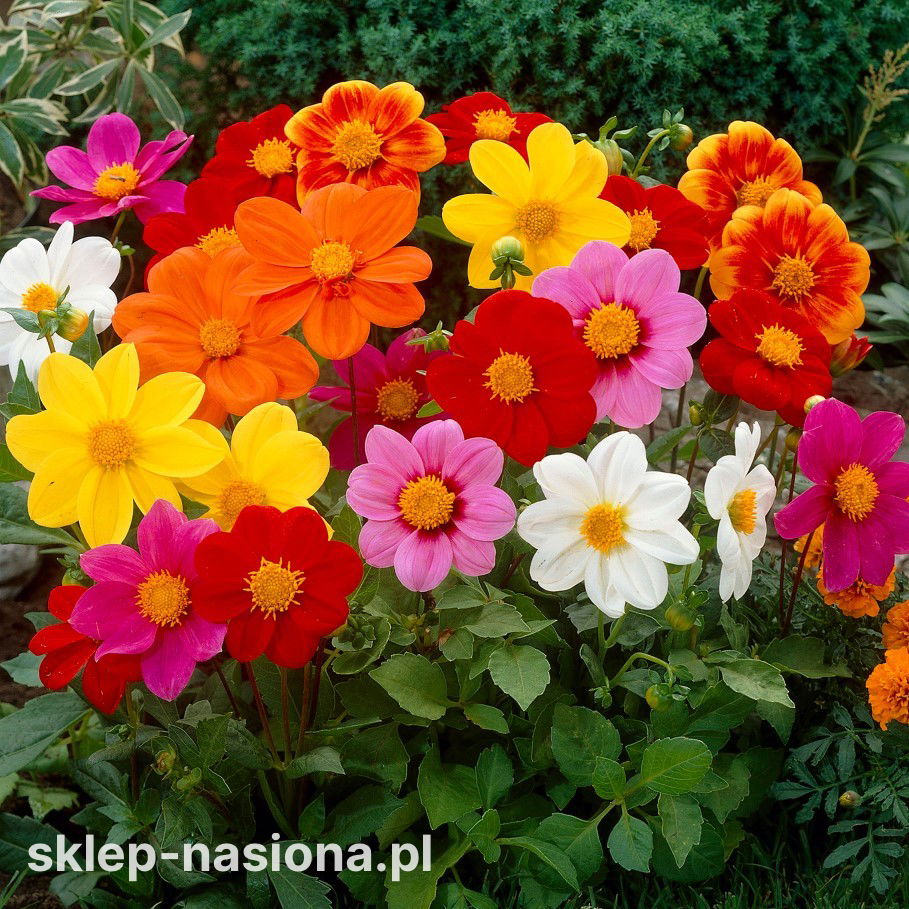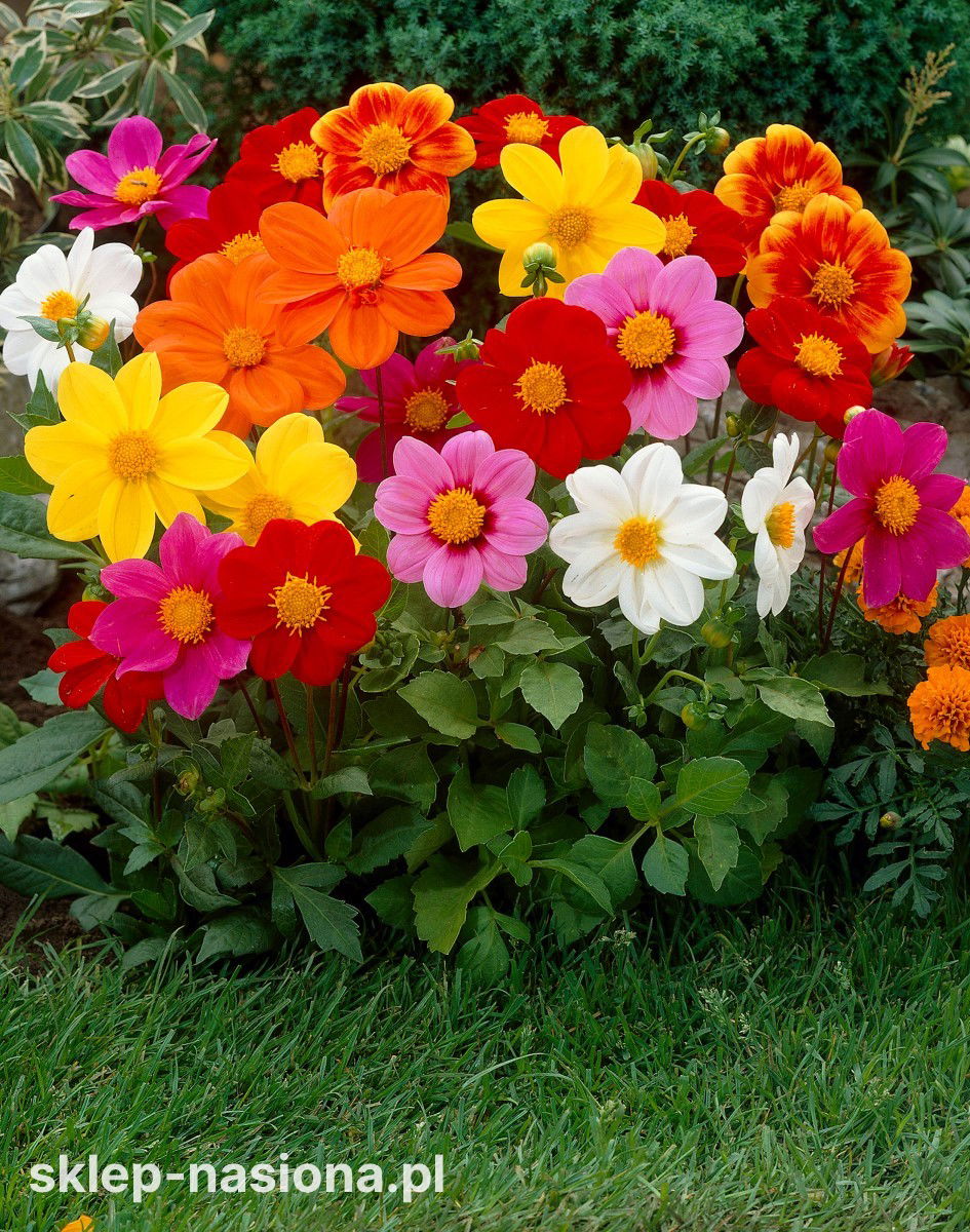 Zastosowanie: Dalia ‘Mignon Mix’ doskonale sprawdza się na rabatach, obwódkach i w pojemnikach, a jej kwiaty długo utrzymują świeżość w wazonach, dzięki czemu nadaje się również na kwiat cięty.