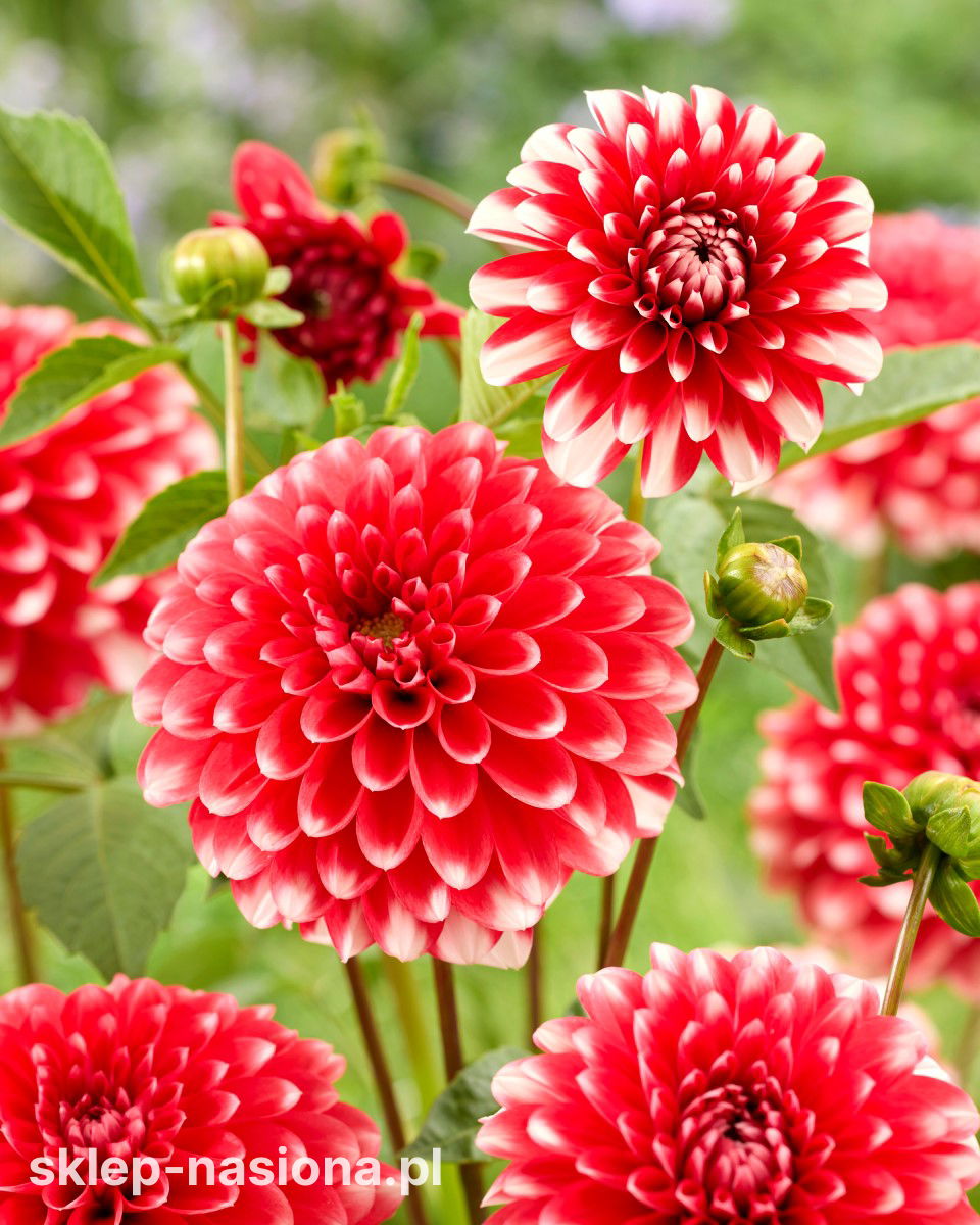 Dalia ‘Nagano’ zachwyca pełnymi kwiatami w intensywnych czerwono-białych kolorach, które ożywiają każdy ogród. Jej kwiaty przyciągają pszczoły i motyle, co sprawia, że wokół rośliny jest więcej życia. To roślina łatwa w uprawie i niezawodna, która będzie piękną ozdobą przez całe lato. Zamów ją już dziś w Sklep-nasiona.pl i ciesz się jej urokiem przez cały sezon.