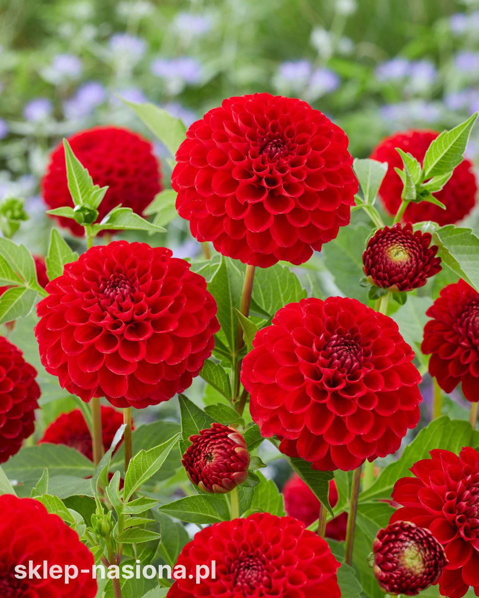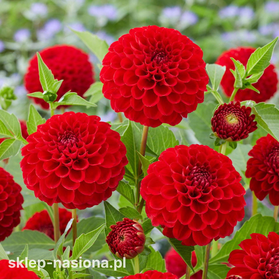Dalia 'Nescio' to odmiana, która zachwyca głębią koloru i klasycznym kształtem kwiatów. Jej kuliste, pomponowe kwiatostany w intensywnej czerwieni doskonale podkreślają charakter rabaty, pojemników i kompozycji kwiatowych. To niezawodny wybór do ogrodu, który ma przyciągać uwagę i nie wymagać skomplikowanej pielęgnacji.