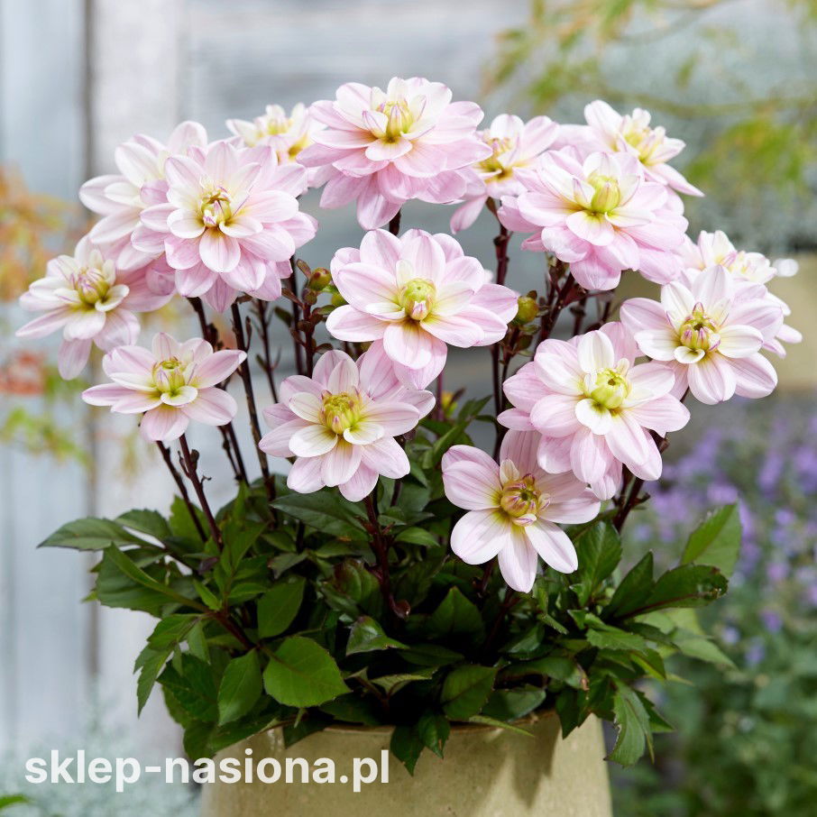 Dalia ‘Pacific Jewel’ to odmiana, która emanuje spokojem i subtelnością. Jej delikatne, jasnoróżowo-białe kwiaty wprowadzają do ogrodu atmosferę świeżości i naturalnej elegancji. Ta półpełna odmiana o kwiatostanach w pastelowych tonacjach – ich harmonijna kolorystyka subtelnie rozjaśnia rabaty i pojemniki, nie dominując otoczenia.