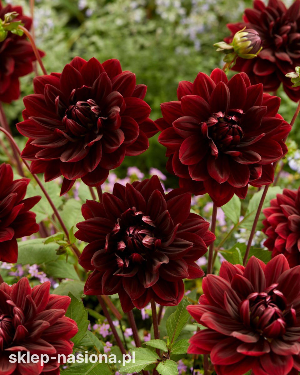 Zastosowanie: Odmiana idealna na rabaty, jako ciemny kontrast dla jasnych odmian dalii, rudbekii czy szałwii. Bardzo dobrze sprawdza się także jako kwiat cięty – jej trwałe kwiaty z aksamitnym połyskiem nadają się do bukietów i kompozycji okolicznościowych. Przyciąga wzrok, a jednocześnie pasuje do wielu stylów ogrodowych – od klasyki po nowoczesność.