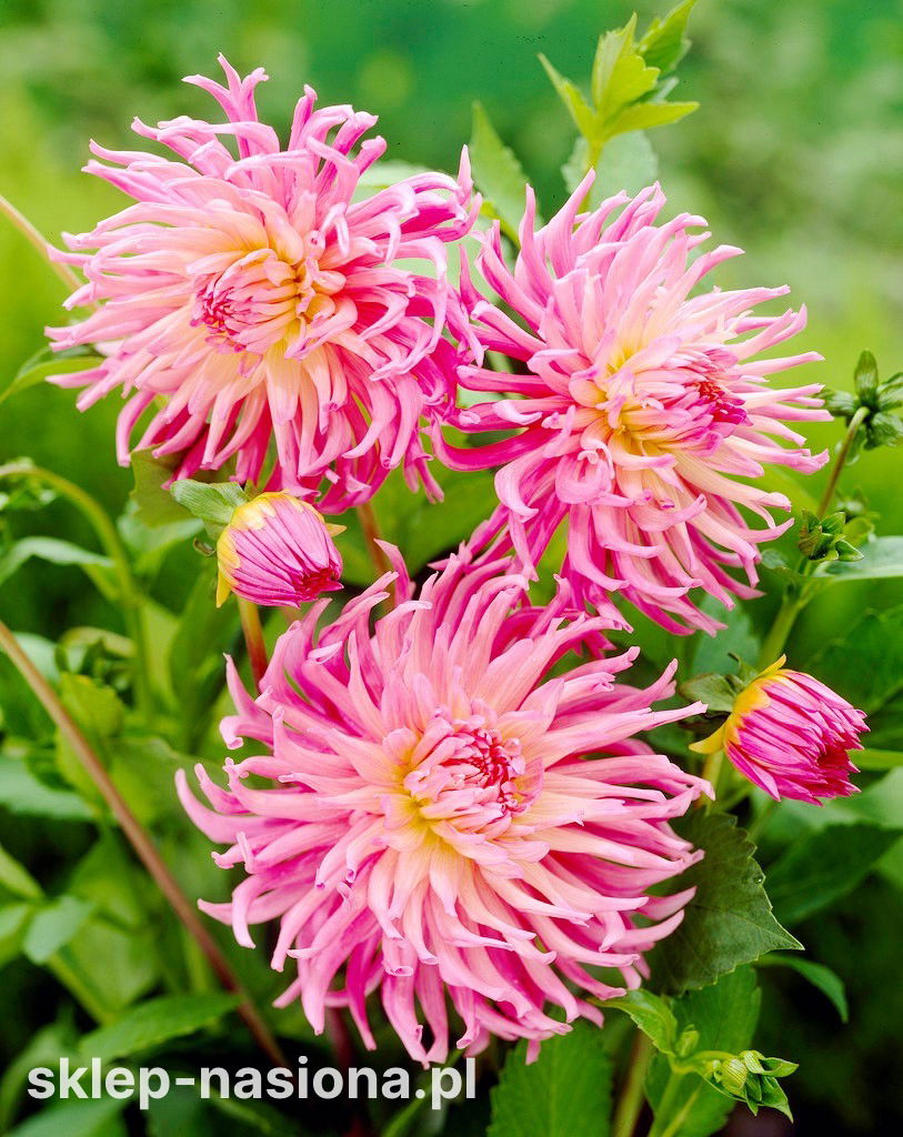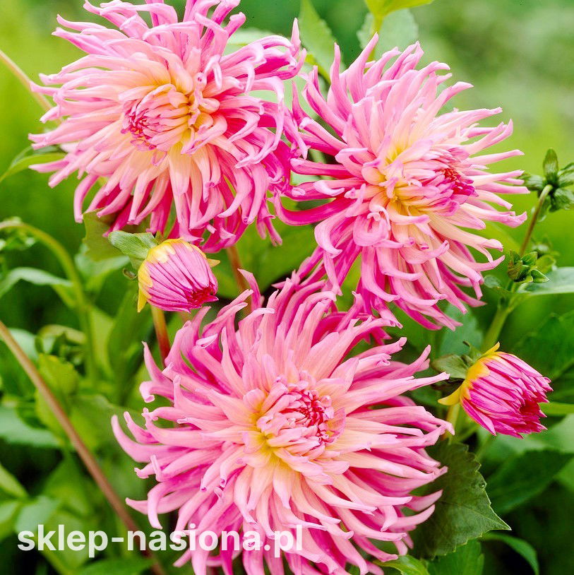 Kolor kwiatów: ta przepiękna odmiana wydaje kwiaty w odcieniu różowym z lekkim żółto-kremowym akcentem u nasady kolczastych płatków.