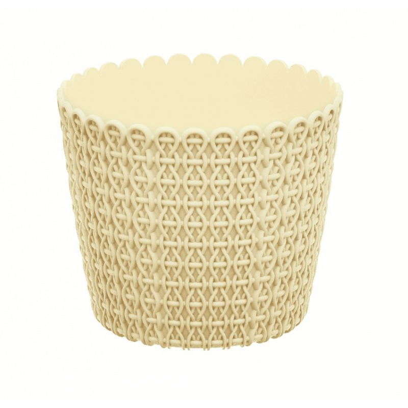 Doniczka okrągła "pleciona" Nitly będzie ciepłym akcentem w każdym wnętrzu. Faktura, którą ozdobiona jest doniczka zainspirowana została splotem wykonanym z grubej włóczki. Jest to bardzo ciekawa propozycja, która sprawdzi się zarówno w nowoczesnym wnętrzu, jak i w pomieszczeniu utrzymanym w romantycznym stylu. Kwiaty będą się pięknie prezentować posadzone w tej uroczej doniczce, a wnętrze stanie się przytulne i miło będzie w nim spędzać czas.