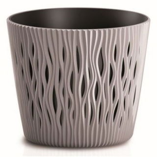 Oferta dotyczy doniczki okrągłej z wkładem Sandy Round w kolorze mocca.