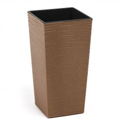 Doniczka z domieszką drewna Satina Eco to uniwersalna ozdoba do każdej rośliny. Klasyczny, gładki wzór znakomicie nadaje się do każdego pomieszczenia. Nowością jest zastosowanie w produkcji tworzywa sztucznego z drewnianymi wiórami, których zawartość sięga aż 35%. Dzięki temu doniczka zyskała naturalny wygląd, nieporównywalny z innymi produktami dostępnymi na rynku. Jest to fantastyczna doniczka dla osób ceniących sobie praktyczne, proekologiczne przedmioty. Plastik użyty do doniczki pochodzi z recyklingu, a drewniane wióry są produktem ubocznym produkcji mebli. Spokojna kolorystyka i prosty design nawiązują do naturalności i barw występujących w przyrodzie. Ponadto doniczka jest wytrzymała, odporna na warunki atmosferyczne, co czyni ją rewelacyjną dekoracją balkonów, trasów i ogrodów. Wysoka jakość wykonania, dbałość o detale podnoszą walory estetyczne doniczki. Gładka powierzchnia o półmatowym wykończeniu jest bardzo prosta do utrzymania w czystości. Satina Eco jest odporna na uszkodzenia. Nie tłucze się i nie rysuje - jej powierzchnia jest twarda.