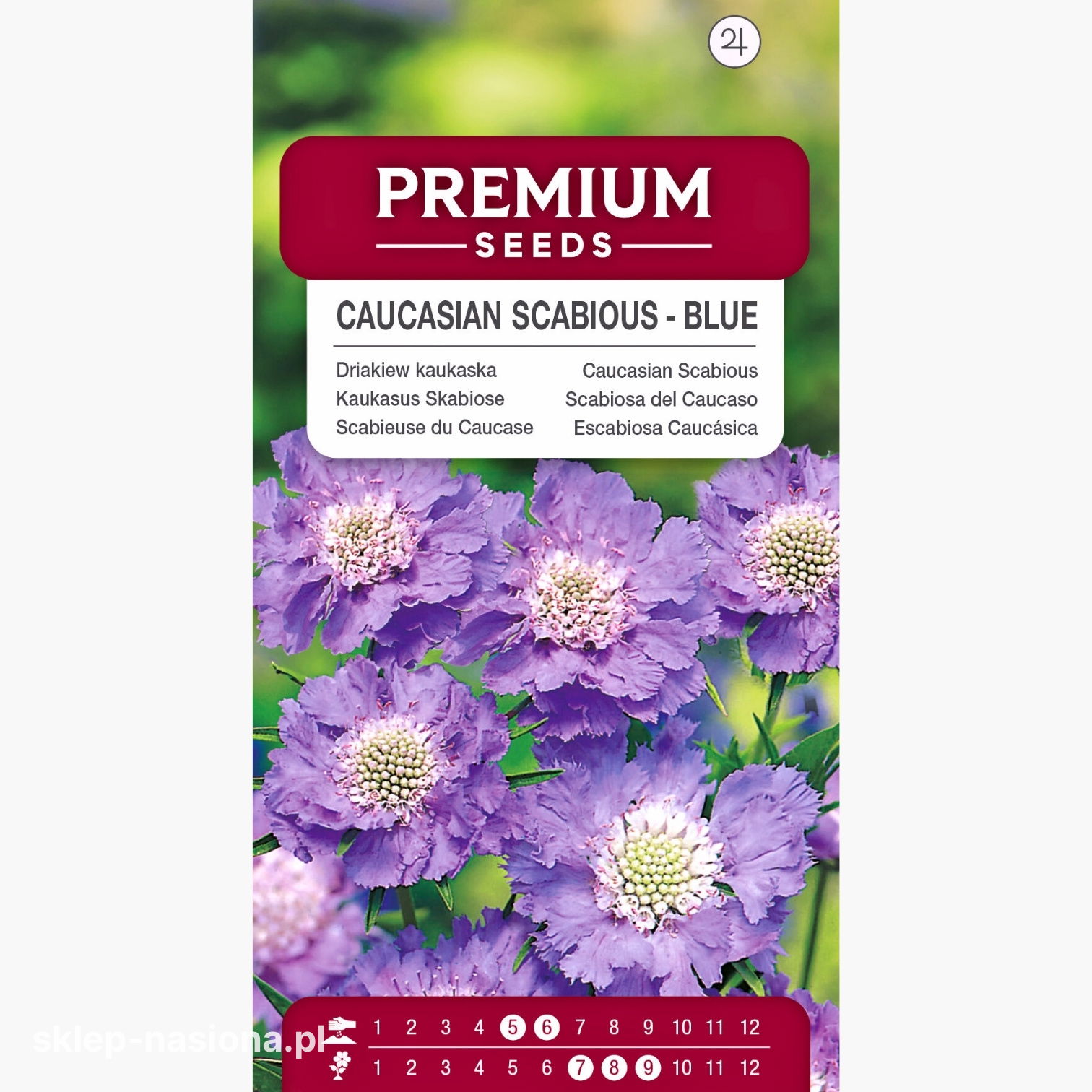 W opakowaniu znajduje się 0,3 g nasion driakwi kaukaskiej niebieskiej z instrukcją wysiewu i datą przydatności.