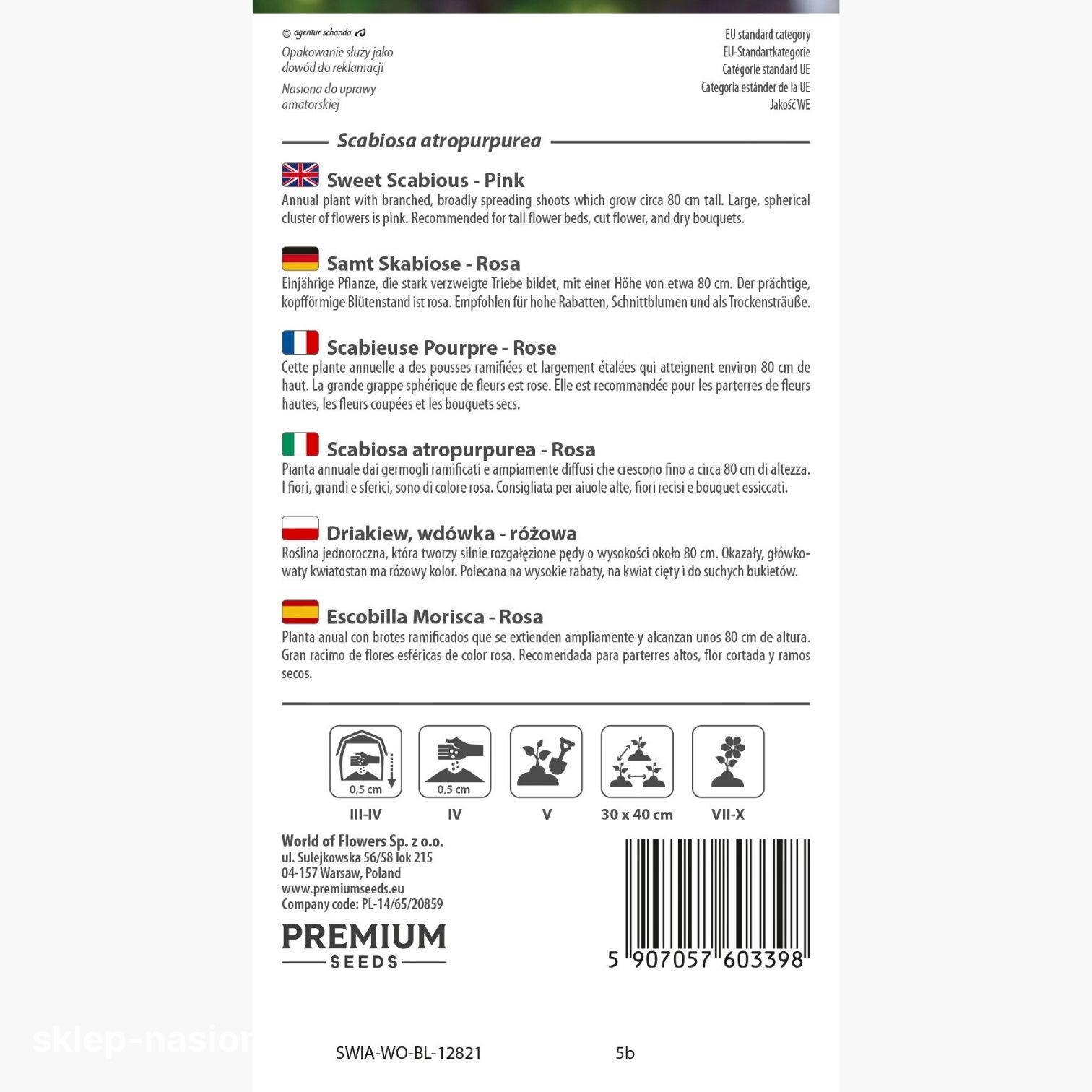 W opakowaniu znajduje się 0,5 g nasion driakwi różowej. Każde opakowanie oferowane przez sklep-nasiona zawiera aktualny termin przydatności do siewu i wskazówki dotyczące uprawy.