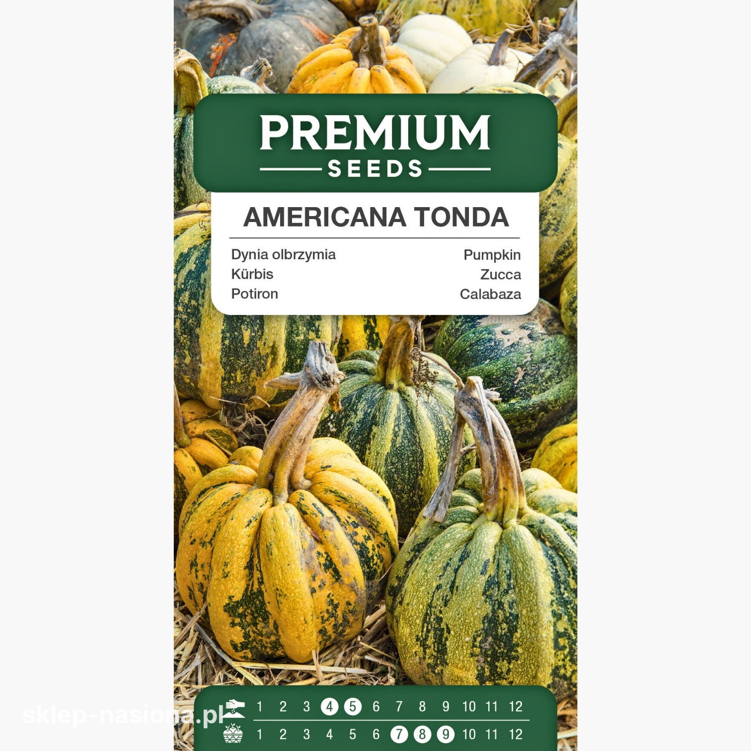 W opakowaniu znajduje się 3 g nasion dyni Americana Tonda. Każde opakowanie zawiera informacje o terminie przydatności do siewu oraz podstawowe wskazówki dotyczące uprawy.
