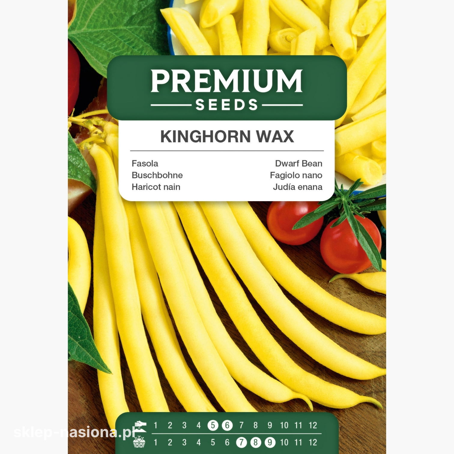 W opakowaniu znajduje się 30 g nasion fasoli Kinghorn Wax. Każde opakowanie zawiera informacje o terminie przydatności do siewu oraz praktyczne wskazówki dotyczące uprawy.