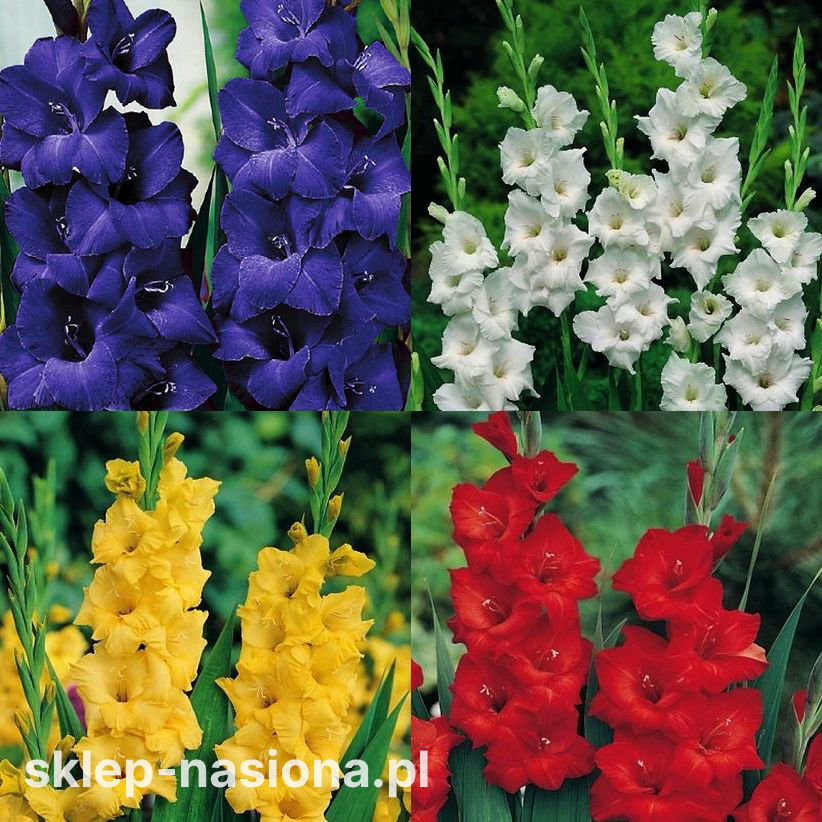 Kolor kwiatów: Mix, który oferuje nasz sklep, to unikalna mieszanka cebul mieczyków wytwarzających kwiaty białe, czerwone, niebieskie i żółte.