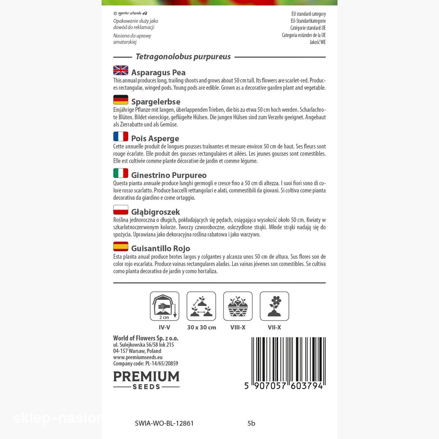 Opakowanie zawiera około 23 nasion. Wartość przybliżona +/-20%.