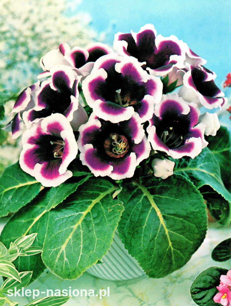 Opis rośliny: Gloksynie rzadko pojawiają się na rabatach, dużo częściej ich ozdobne kwiaty można zobaczyć na parapetach i pokojowych półkach. Najczęściej te atrakcyjne rośliny mają żywe kolory, jednak odmiana Kaiser Wilhelm ma dwukolorowe kwiaty o kontrastowym zabarwieniu, które mogą wydawać się dość problematyczne. Warto jednak wprowadzić ją do swojego ogrodu – nada rabacie nieco nowoczesności i elegancji.