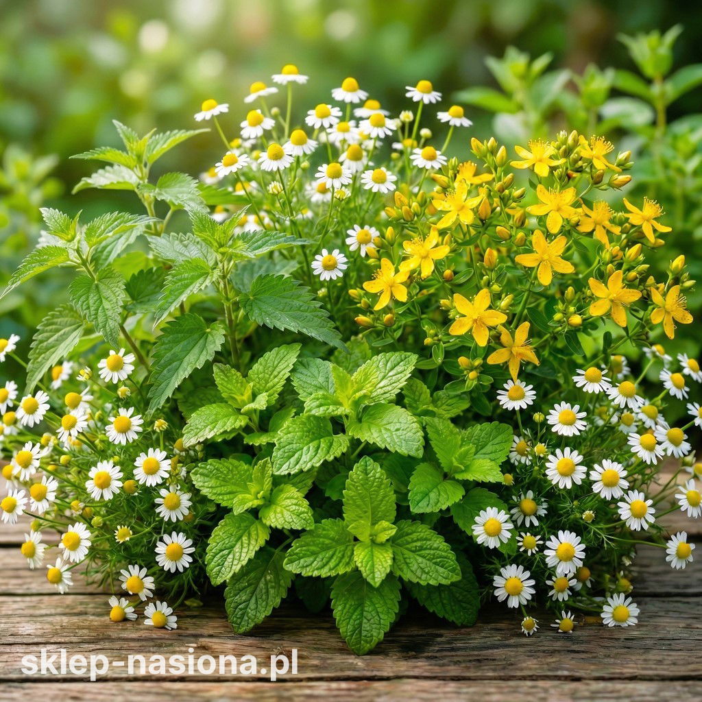 Zestaw nasion ziół składa się z 4 opakowań, w których znajdują się nasiona Melisy lekarskiej, Rumianku pospolitego, Pokrzywy oraz Dziurawca zwyczajnego. Wszystkie ziarna są wysokiej jakości i wolne od wszelkich chorób. Nasiona można wysiać do gruntu lub w doniczce. Wszystkie odmiany są łatwe w uprawie i można je stosować do celów leczniczych lub dekoracyjnych.