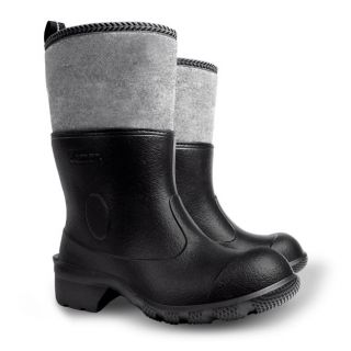Prezentowane kalosze męskie są w tradycyjnym czarnym kolorze, wraz z szarymi filcowymi elementami.