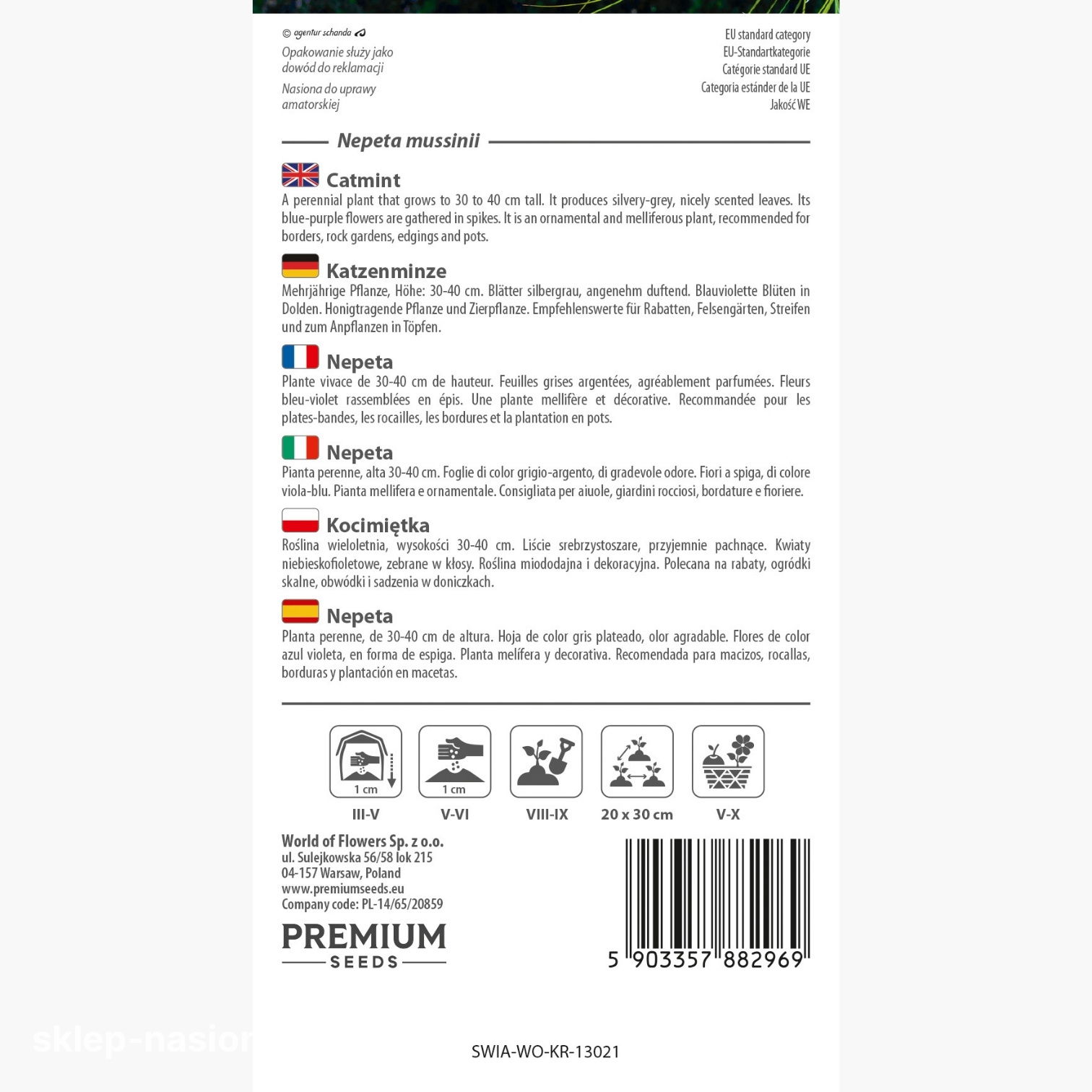 Rozstawa: Chociaż kocimiętka nie tworzy dużych kęp, jej rośliny powiększają się bardzo szybko. Szczególnie na kompostowanych glebach wykazują tendencję do szybkiego rozrostu. Już po kilku latach mogą osiągnąć rozmiary znacznie większe, niż początkowo planowaliśmy. Z tego względu należy pamiętać o zostawieniu odpowiedniej rozstawy między roślinami – optymalna odległość to około 50 cm.
