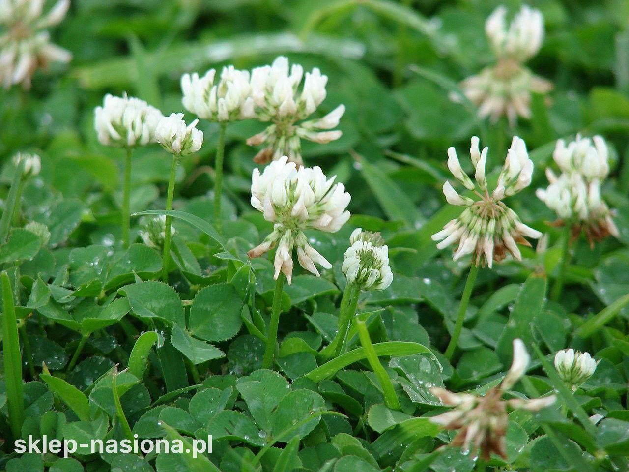 W opakowaniu znajduje się 0,5 kg nasion koniczyny białej Haifa. Każde opakowanie zawiera informacje o terminie ważności oraz praktyczne wskazówki dotyczące siewu.