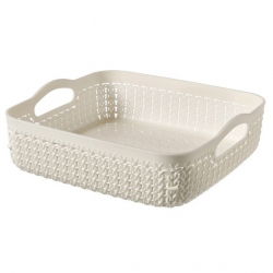 Koszyk prostokątny Knit jest strażnikiem domowego porządku. Niezależnie czy zdecydujesz się użyć go w łazience czy kuchni lub sypialni będziesz zadowolony z efektu. Szybko i sprawnie pomoże Ci uporać się z pomieszczeniami, gdzie nagromadziły się różne przedmioty. Nie tylko nadasz im stosowne miejsce, ale też posegregujesz w odpowiednie koszyki. Koszyk jest miły dla oka, posiada dzianinowy wzór. Dzięki temu jest świetnym detalem do uzupełnienia stylizacji wnętrza. Jest pomocny w zapanowaniu nad chaosem damskiej toaletki – kosmetyki i przybory do makijażu trafią na swoje miejsce. Postawiony w przedpokoju nie pozwoli zginąć kluczom czy parze rękawiczek. Może być wiernym przyjacielem akcesoriów do szycia czy artykułów hobbystycznych. Koszyk posiada dwa duże uchwyty, które zapewniają swobodę przenoszenia i niebanalny wygląd. Świetnie sobie radzi w biurze czy obiektach użyteczności publicznej. Koszyk prostokątny Knit jest wielozadaniowy a jego wygląd udowadnia, że pojemnik do przechowywania nie muszą być nudne.