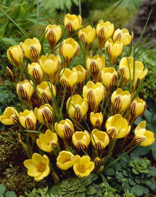 Pręgowane, złocistobrązowe kwiaty krokusa Gipsy Girl przywodzą na myśl umaszczenie tygrysa. Ta drobna, urocza roślinka sprawi, że każda wiosenna kompozycja nabierze nieco drapieżności – wczesną wiosną rozkwita wszak niewiele dwubarwnych kwiatów. Szafran świetnie sprawdza się tak w uprawie doniczkowej, jak i w gruncie, gdzie w krótkim czasie tworzy gęste, kwietne kobierce. Nie wymaga przy tym niemal żadnej pielęgnacji!