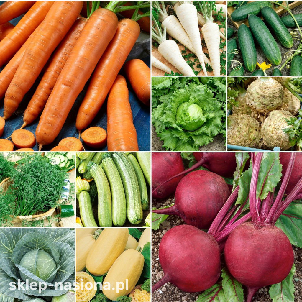 Zawartość zestawu: Marchew Karotina, Koper ogrodowy Krezus, Sałata Traper, Ogórek Delicious, Seler korzeniowy Talar, Dynia makaronowa Warszawska, Burak ćwikłowy Jawor, Pietruszka Cukrowa, Cukinia Bianca di Trieste, Kapusta głowiasta biała Zora.