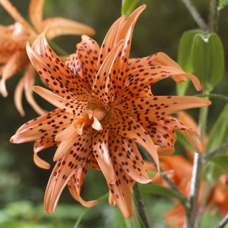 Lilia azjatycka Tigrinum to jedna z ciekawszych pełnych odmian, która odznacza się niezwykłymi walorami dekoracyjnymi. Liczne płatki w pomarańczowym kolorze przyozdobione są ciemnymi kropkami, które dodają kwiatom uroku. Pozbawione pręcików kwiaty doskonale nadają się do bukietów.