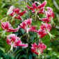 Kolor kwiatów: czerwono – różowy z jasnozielonymi, podłużnymi akcentami u nasady płatków. Na powierzchni kwiatów występuje ciekawa faktura wypukłych smużek i cętek, która rewelacyjnie podkreśla orientalny charakter kwiatów.