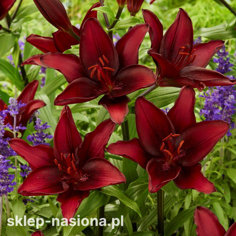 Lilia Mascara jest niepodważalnie królową lilii azjatyckich. To niewątpliwie jedna z najoryginalniejszych odmian dostępnych w Polsce. Wyróżnia ją wyjątkowo ciemna, głęboka barwa kwiatów, które są tak ciemnobordowe, że w odpowiednim oświetleniu wydają się całkowicie czarne. Ta łatwa w uprawie, mrozoodporna, wytrwała w kwitnieniu odmiana doda ekstrawaganckiego charakteru każdej rabacie.