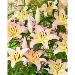 Kolor kwiatów: subtelna kolorystyka lilii Hocus Pocus łączy w sobie pastelowy róż, biel i jasny żółty.