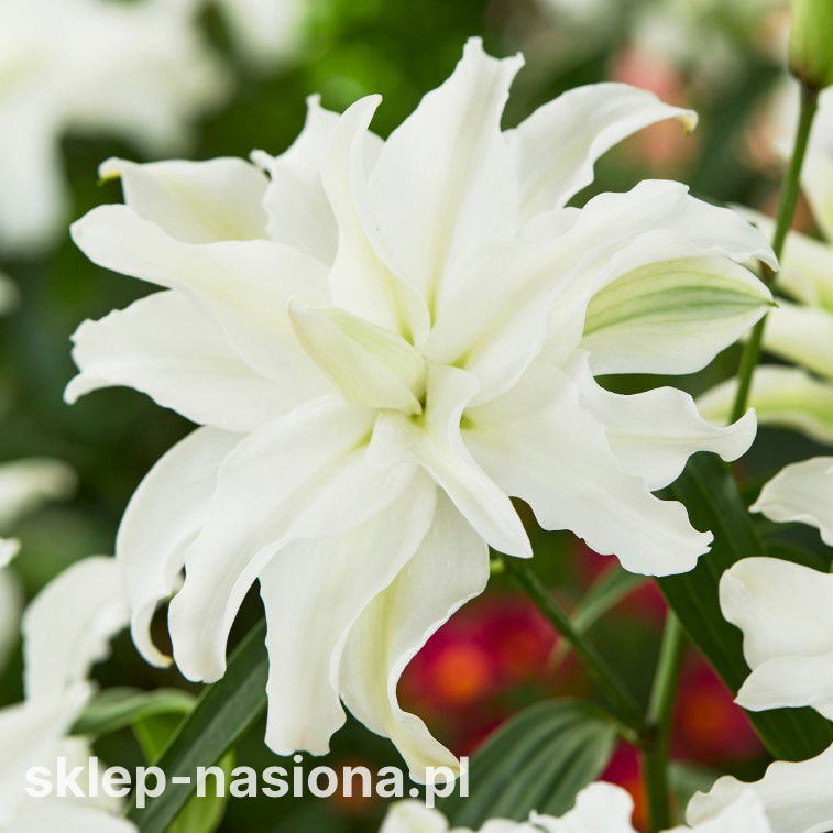 Lilia pełna ‘My Wedding’ to propozycja dla tych, którzy marzą o ogrodzie pełnym subtelnej elegancji. Jej śnieżnobiałe, wielowarstwowe kwiaty są prawdziwą ozdobą rabat i tarasów – promieniują spokojem i idealnie pasują do romantycznych aranżacji. To roślina, która wnosi do ogrodu świeżość i atmosferę lekkości, tworząc miejsce, w którym aż chce się odpoczywać.