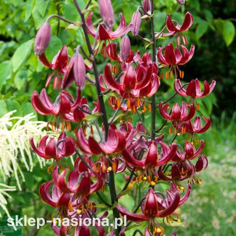 Lilia złotogłów 'Claude Shride' to odmiana o wyjątkowym uroku – głęboko bordowe kwiaty z połyskiem i elegancko odgiętymi płatkami przyciągają wzrok i dodają ogrodowi szlachetnego charakteru. Jej smukłe pędy i zwisające kwiatostany sprawdzą się zarówno w rabatach, jak i w naturalistycznych nasadzeniach. Kup cebulki premium w sklepie-nasiona.pl i przekonaj się, jak efektowna może być klasyka w ogrodowym wydaniu.