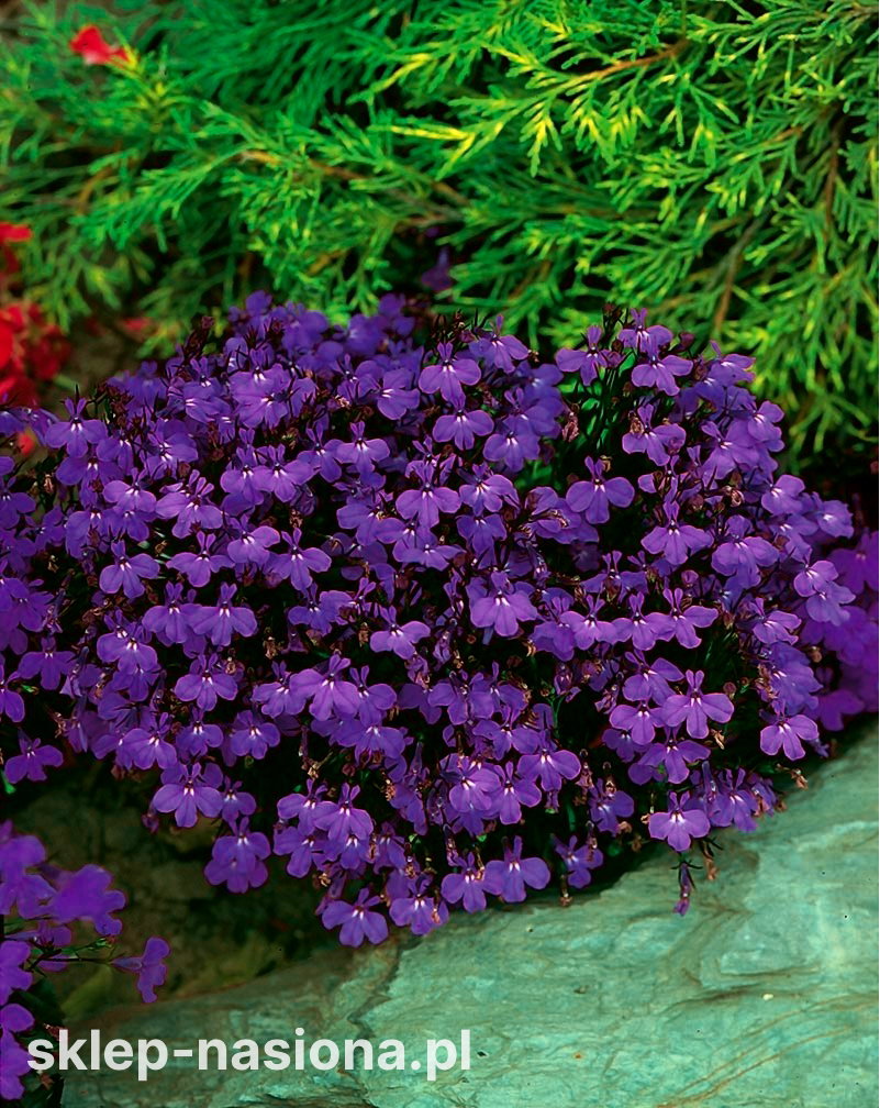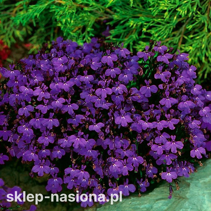 Lobelia przylądkowa to bardzo popularna roślina jednoroczna, tworząca półkuliste kępki obsypane masą drobnych, fioletowych kwiatków. Doskonale nadaje się do obsadzania skrzynek balkonowych obraz obrzeży rabat, a także do tworzenia barwnych kompozycji z innymi niskimi roślinami jednorocznymi.