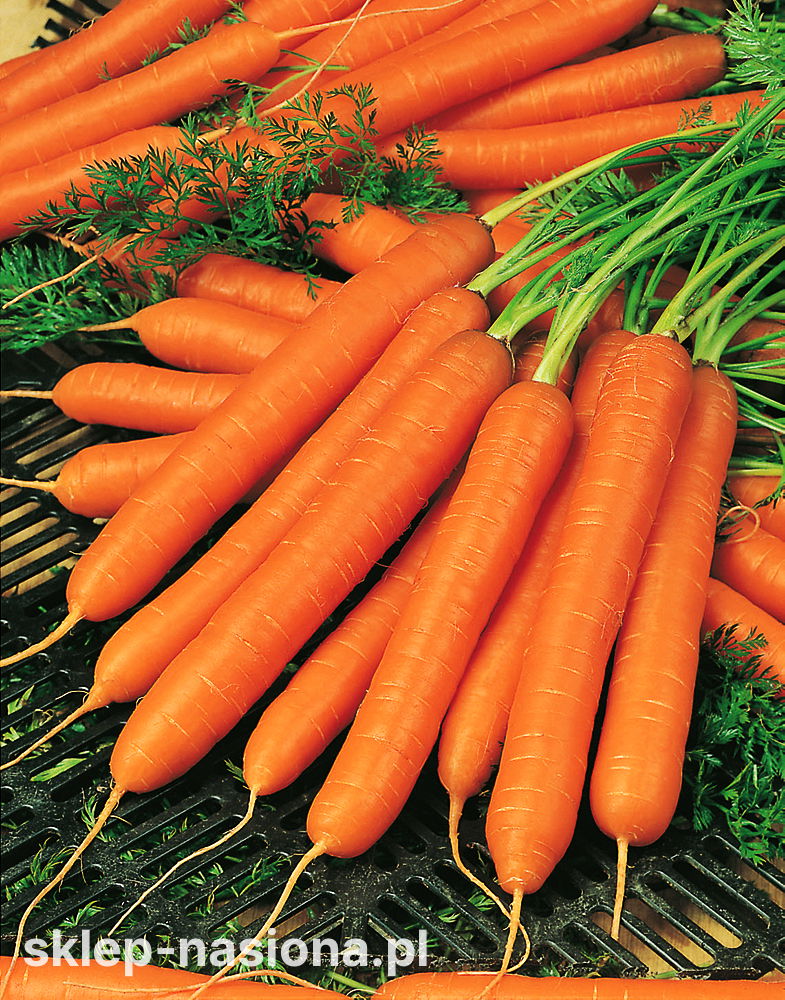 Zastosowanie: Zgrabne, soczyste i bardzo słodkie korzenie polecamy zjadać na surowo jako zdrową letnią przekąskę lub dodatek do surówek. Wyśmienity smak mają zwłaszcza młode marchewki z wczesnego zbioru pęczkowego. Ze starszych korzeni można wyciskać sok bogaty w prowitaminę A i witaminę C, a także gotować je na parze i ucierać oraz wykorzystywać w wypiekach.