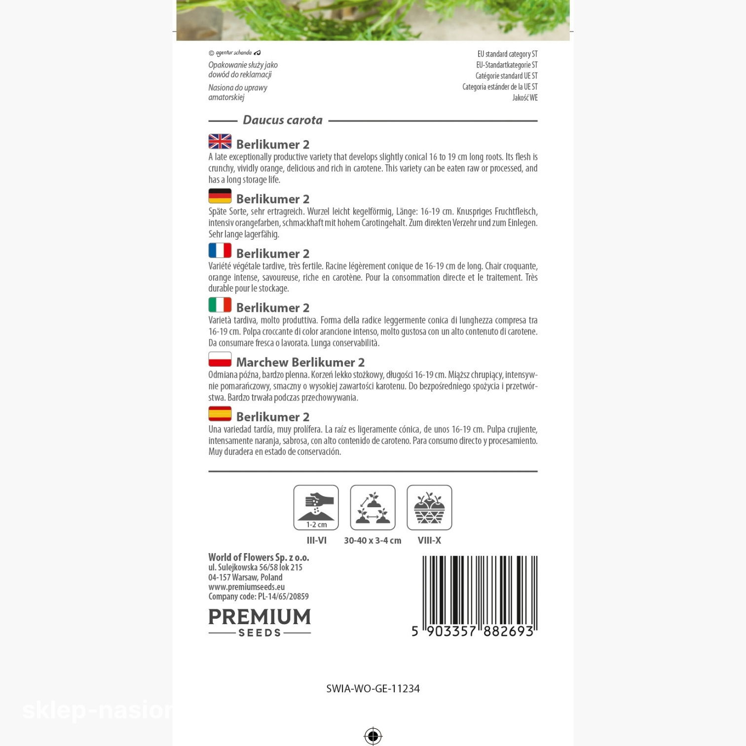 Opis rośliny: Berlikumer 2 – Perfekcja to jedna z odmian marchewki w typie Berlikumer. Jej korzenie są dość długie i bardzo smaczne, a ich największą zaletą jest duża przydatność do przechowywania. To późna odmiana, szczególnie nadająca się na zbiór jesienny, może więc być wykorzystywana zimą.