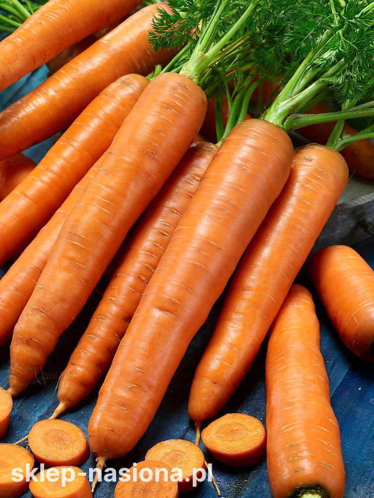 Marchew Karotina to wczesna odmiana o intensywnie pomarańczowych, tępo zakończonych korzeniach i zwiększonej zawartości karotenu. Wysoka zawartość cukrów wpływa na przyjemnie słodki smak, dzięki czemu korzenie chętnie chrupią także dzieci. Odmiana doskonale nadaje się do bezpośredniego spożycia, a także na przeciery i soki.