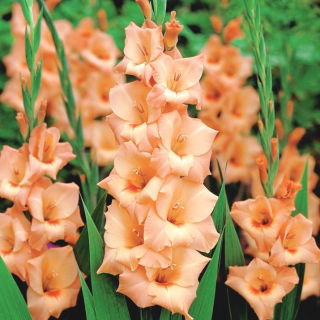 Mieczyki, zwane też gladiolami, to jedne z najbardziej efektownych bylin kwitnących – zarówno pod względem wielkości, jak i kształtu oraz koloru kwiatów. Prezentowana odmiana Peter Pears kwitnie bardzo obficie od połowy lata, a jej jaskrawo wybarwione kwiatostany wykazują ponadprzeciętną wartość ozdobną.