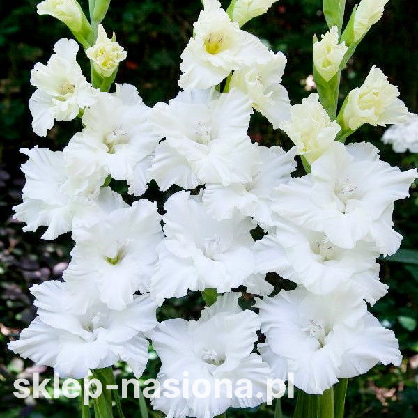 Mieczyk Tarantella zauroczy wszystkich podczas długiego i obitego kwitnienia, podczas którego na jej smukłych pędach otworzą się śnieżnobiałe pąki. To odmiana wyróżniająca się pofalowaną formą kwiatów i dość dobrą odpornością na choroby. Tarantella kapitalnie wpasowuje się w wielogatunkowe obrzeża rabat czy w większe nasadzenia pod budynkami. Długie i mocno ukwiecone łodygi tej odmiany to materiał na wyrafinowane bukiety, długo zachowujące świeżość.