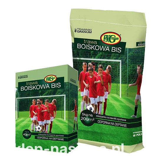 Mieszanka traw Boiskowa BIS została opracowana z uwzględnieniem podwyższonej odporności na wydeptywanie, jaką muszą cechować się trawniki intensywnie użytkowane. W jej skład wchodzą najodporniejsze gatunki traw, które intensywnie się zagęszczają i szybko regenerują się po uszkodzeniach. W pełni odporna na mróz, suszę i mało wrażliwa na niekorzystne warunki środowiskowe, proponowana mieszanka perfekcyjnie sprawdza się na boiskach sportowych, terenach rekreacyjnych i trawnikach przydomowych, na których bawią się dzieci.