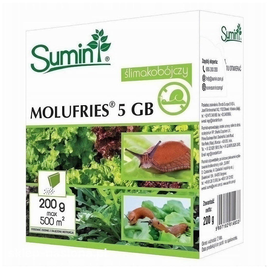 Molufries 5 GB to granulowany preparat przeznaczony do skutecznego zwalczania ślimaków nagich. Produkt charakteryzuje się wysoką efektywnością i łatwością stosowania, dzięki czemu idealnie nadaje się do ochrony upraw takich jak zboża, rzepak ozimy, kukurydza, różne odmiany sałaty oraz rokietta siewna.